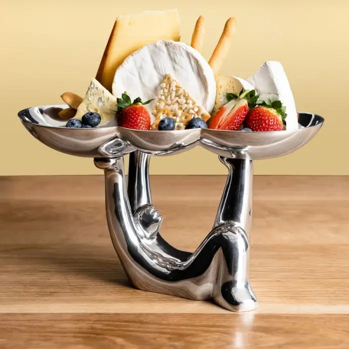 A whimsical centrepiece that showcases a sculptural character holding up a cloud-shaped platter. Crafted from durable aluminium, serve your selection of creative snacks on this iconic centrepiece.