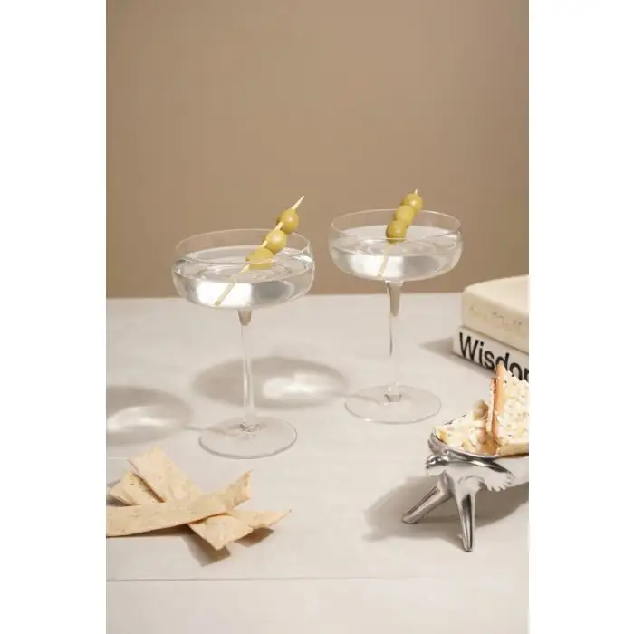 The ‘ripple’ Champagne Coupe Glass Set of 4 is an exquisite addition to our most romantic glassware range. Like a drop into a body of water, the Ripple range takes its inspiration from the shapes ripples make in water. Enjoy the design of subtle waves on a surface of water across the horizon at the bottom of each coupe glass. Crafted for your enjoyment, these glasses feature a flat, wide, and shallow base, which makes this set a great choice for mature champagnes that need more space to develop as well as gin cocktails and martinis. An expression of true craftsmanship, the Ripple glassware range is mouth-blown and hand-finished, by our skilled artisans. Synonymous with this traditional manufacturing process, each glass brings a personal and unique touch. Complement your glassware collection by incorporating the rest of the Ripple range, which include champagne flutes, tumblers and wine glasses, into your lifestyle. Hand wash recommended. Capacity: 250ml each.