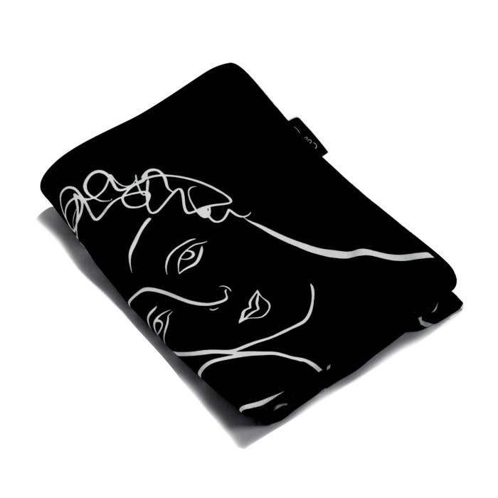 A velour Sketchbook Black cushion cover designed to showcase two of Carrol’s unique sketches ‘hold my heart’ and ‘reminisce’ on each side. A generously sized and plush cushion cover measuring 60cm x 60cm.