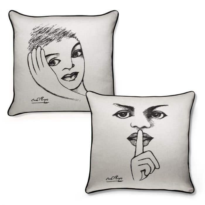 Carrol creates her sculptures from a series of drawings in an archive of sketchbooks. For many years, these drawings have been kept private as personal works of reference. The images from these sketchbooks are woven as a jacquard into the fabric, thus enhancing the detail of the drawings. Each unique cushion cover features two different faces. Made in South Africa from 100% cotton.