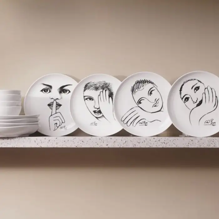 Elevate your dining experiences with the 12-piece Dinnerware Set. Designed to entice, delight, and spark lively conversations around the table, the Sketchbook ceramic range brings a touch of artistic flair to your dining experience. Each dinnerware item in this set is carefully shaped with softly contoured lines and thought-out dimensions, creating a mesmerizing illusion of movement that will captivate your guests. This set features Dinner Plates, Side Plates and Cereal/Soup Bowls for a party of 4. The perfect choice for a family of four, 4 illustrative designs are featured in this collection. The popular designs in this set include ‘eye for detail’, ‘it’s a secret’, ‘let’s face it’, and ’face facts’. It features Carrol’s popular drawings which have transformed ordinary dinnerware into stylish and interesting pieces of art that can be used daily. Equally suited for everyday use or special occasions, this set is testament to fine craftsmanship and modern design. Microwave and dishwasher safe.