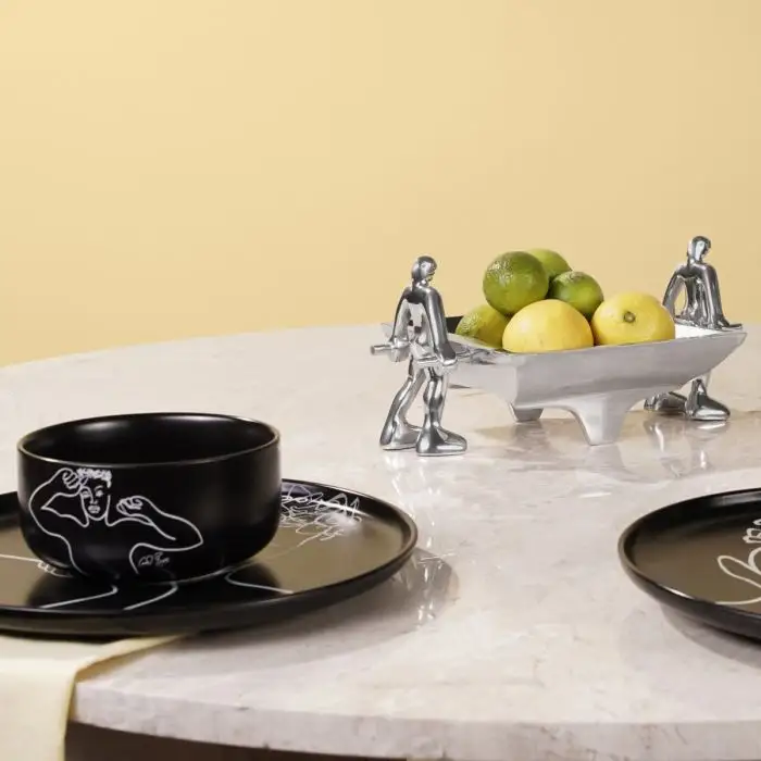 As the name suggests, ‘men at work’, is inspired by a spirit of synergy and connection. A fruit bowl or decor piece, you decide. This iconic Dish is made of cast aluminium and supported by two sculptural figures.