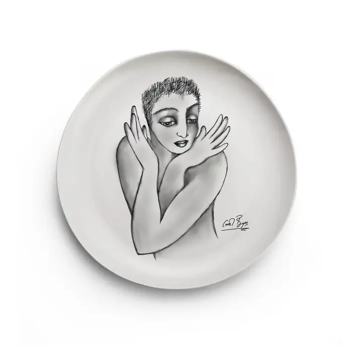 Allow your side plate to take center stage! From the Sketchbook range, flutter is a fine porcelain side plate featuring an ingénue figure fluttering her hands across her shoulders. This design adds a unique combination of glee and elegance to your table setting. Adorned with Carrol’s personal sketchbook drawings, the Sketchbook ceramic range is designed to entice, delight, and encourage conversation around the table. Bespoke works of art are portrayed on the finest porcelain made especially with your home in mind. Designed to be as sophisticated as it is convenient for your lifestyle, this side plate is microwave and dishwasher safe.