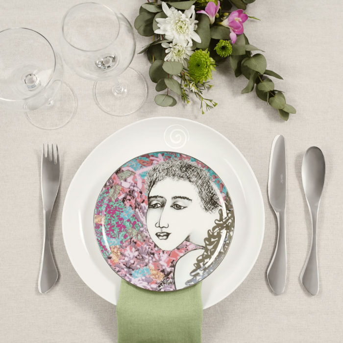 Be Bold! Be Whimsical! Enjoy the distinctiveness of the Kaleidoscope Range’s ‘luscious’ Side Plate Set of 2. Crafted from Fine Bone China, these Side Plates align modern lifestyle with a sense of specialness. Each depicts a figure from a classic Sketchbook design, drawn to capture attention. Their demeanour projects a perfect balance between feminine gracefulness and intransigent self-assurance. They rest, elegantly, against an artistic pink floral background design that’s accentuated with blue and green hues. All of which is wreathed in the latest embellishments of Carrol Boyes – metallic platinum whorls. Use these Side Plates to serve tea alongside the matching ‘lucious’ Mug set for extra enjoyment while catching up with friends. Join in their rendering of joyful celebration during an intimate dinner. Or pair them with a selection from the Kaleidoscope range to accentuate your table setting. Handwash and stack with protective material between items to protect their decorative embellishments.