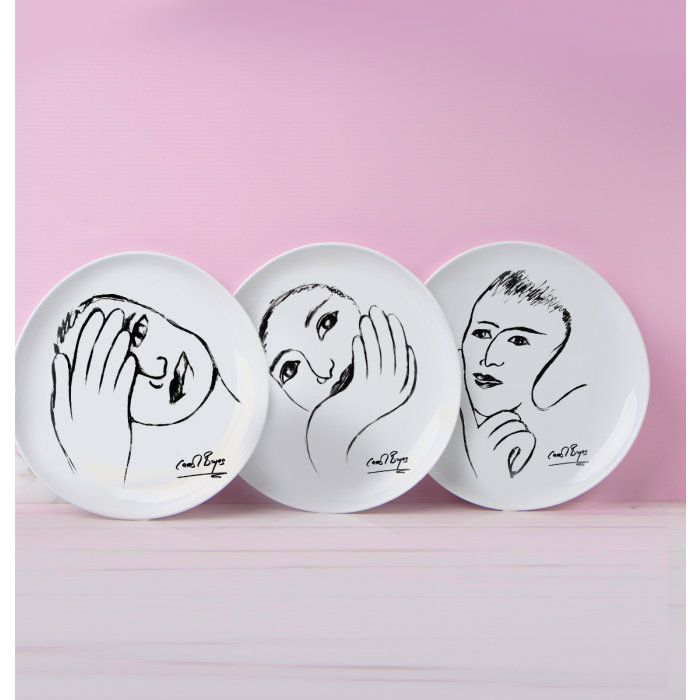 The ‘Face Facts’ Set of 4 Side Plates are the perfect blend of functionality and style, as each plate promises to bring a touch of sophistication to your table. A beloved design from our Sketchbook Collection, these plates elevate your dining experience. Pair them with matching pieces or mix and match for a personalized touch. Featuring an exclusive Carrol Boyes sketch at the center, each plate showcases whimsy and sophistication. Crafted from fine porcelain with a glossy finish, they add playful elegance to your table setting. These microwave and dishwasher-safe plates are not just practical but enchanting. Express your style by mixing and matching across the Sketchbook range. Elevate every meal with the ‘Face Facts’ Side Plates.